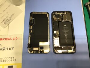交換の際はお客様の端末をしっかりと温めてから開けていきます!!バッテリー端子・画面端子を取り外してお客様のパーツを取り外して新しい部品を取り付けていきます。正常に動作することが確認できたらパーツを交換していきます。